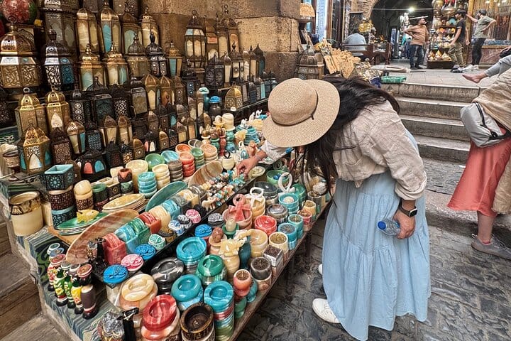 A luxurious and enjoyable shopping experience that allows you to discover the true spirit of Egypt, from papyrus art and traditional perfumes to personalized cartouches, high-quality Egyptian cotton, handmade carpets, and aromatic spices, with free time to explore the vibrant alleys and unique atmosphere of the famous Khan El Khalili Bazaar.