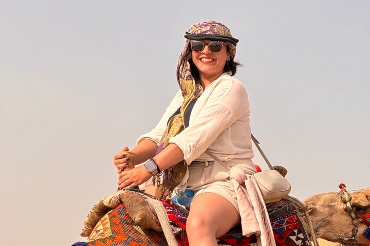 entrance fees, a light but authentic local lunch, a camel ride with great pyramid photo ops, and a guide to explain everything.